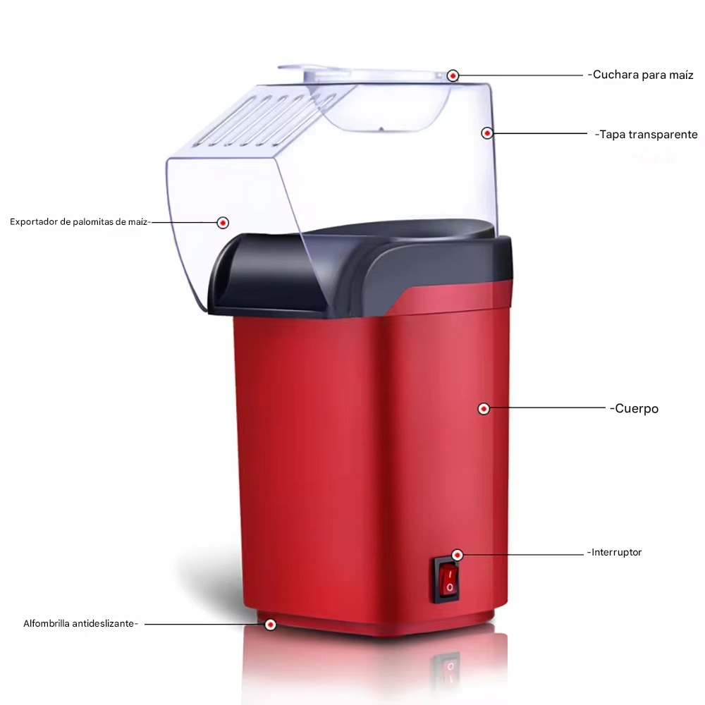 Con su diseño compacto y ligero, es perfecta para cualquier cocina u oficina. Solo carga los granos, enciéndela y disfruta de palomitas frescas, sin líos ni complicaciones.